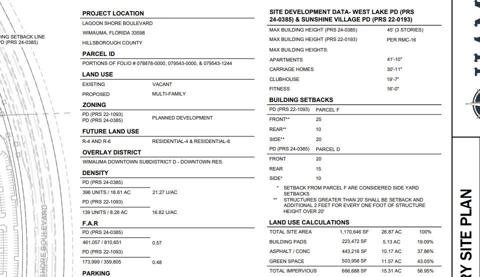 - Most of us learned in early 2024 what developer Dune Fl Land I Sub LLC had in mind when we discovered they were seeking a variance to build up to 45 feet. The proposed 45' elevation will likely block the Lagoon's beautiful sunset views and with the proposed minimal setbacks will cast a morning shadows on DR Horton homes on Jackel Chase Drive, Ever Crew Pl and Oval Rum Drive.